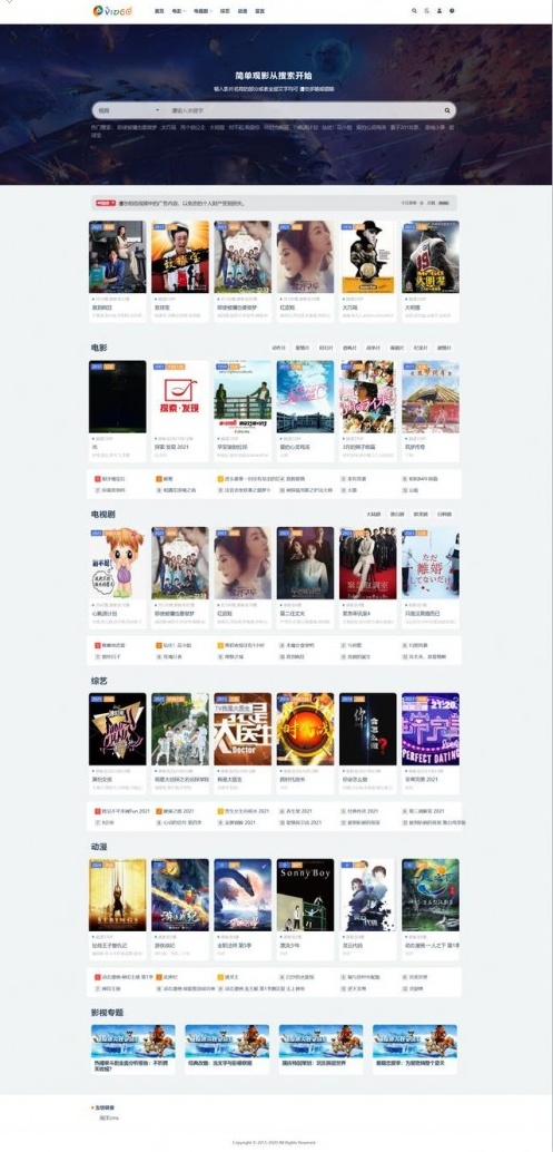 官方原版美化修改版海洋cms模板,官方V10.7版本自带原模板,完美无错,自适应手机端。美化修改了:1、导航为一行,2、首页添加幻灯片效果,3、播放页修改为完整显示,不会因为页面的滑动而被导航所遮挡。下载后直接上传到templets目录,后台选择模板目录即可使用,具体大家自行体验吧。...